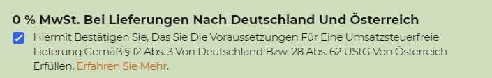 Confirm that you meet the VAT exemption requirements. If so, check the box indicating that the products you purchased are exempt from VAT. (See screenshot)👇